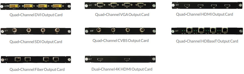 Output:VGA, DVI, HDMI, CVBS, SDI, HDbaseT, Fiber optic, etc.